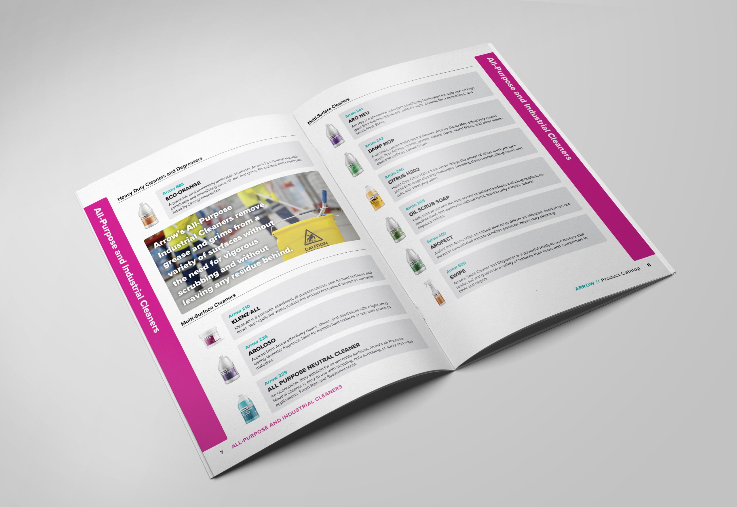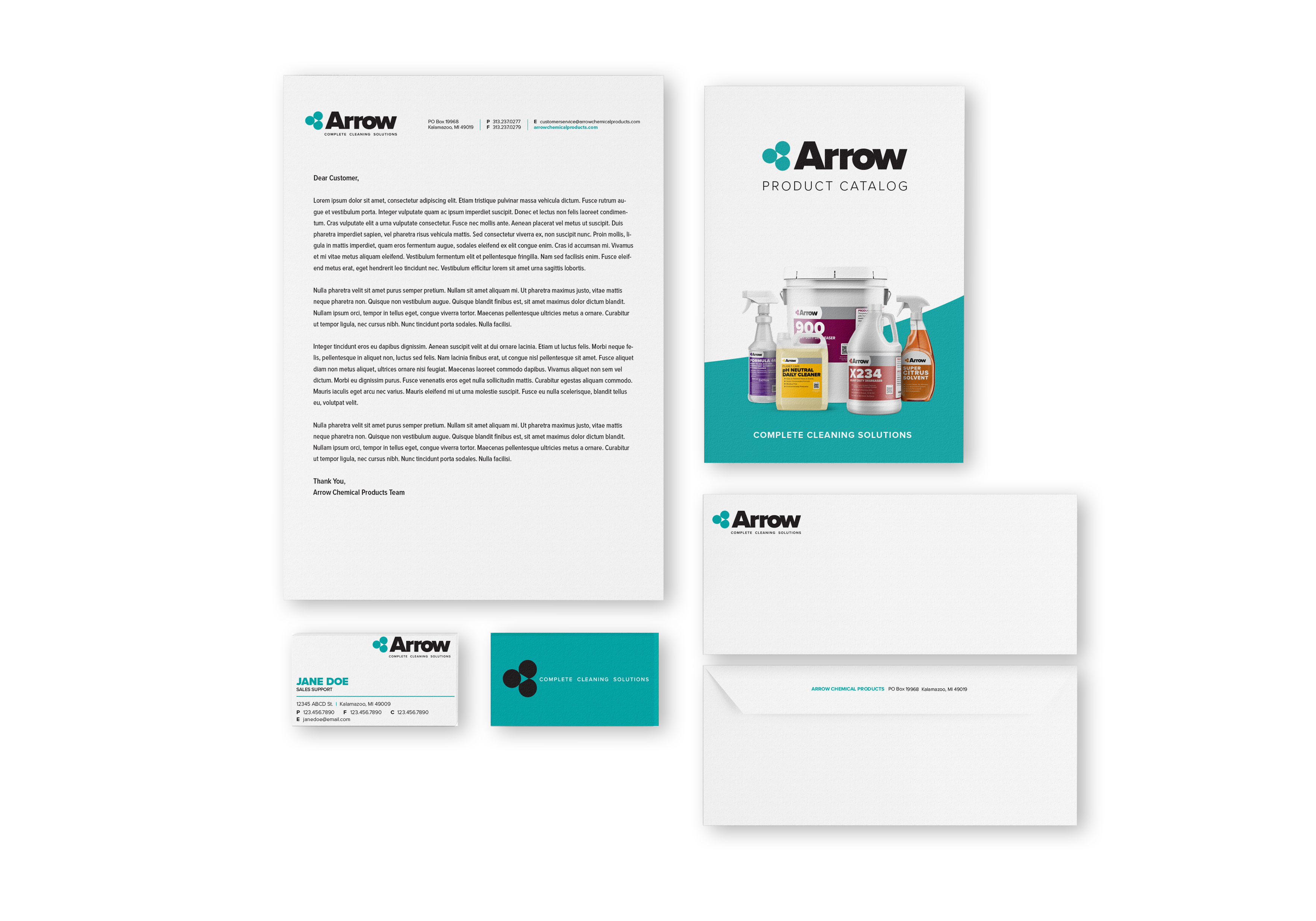 Arrow Chemical Products develops complete cleaning solutions tailored for businesses. They required a complete visual identity system as their branding had not been refreshed in a significant period, seeking a modern and rejuvenated appearance.