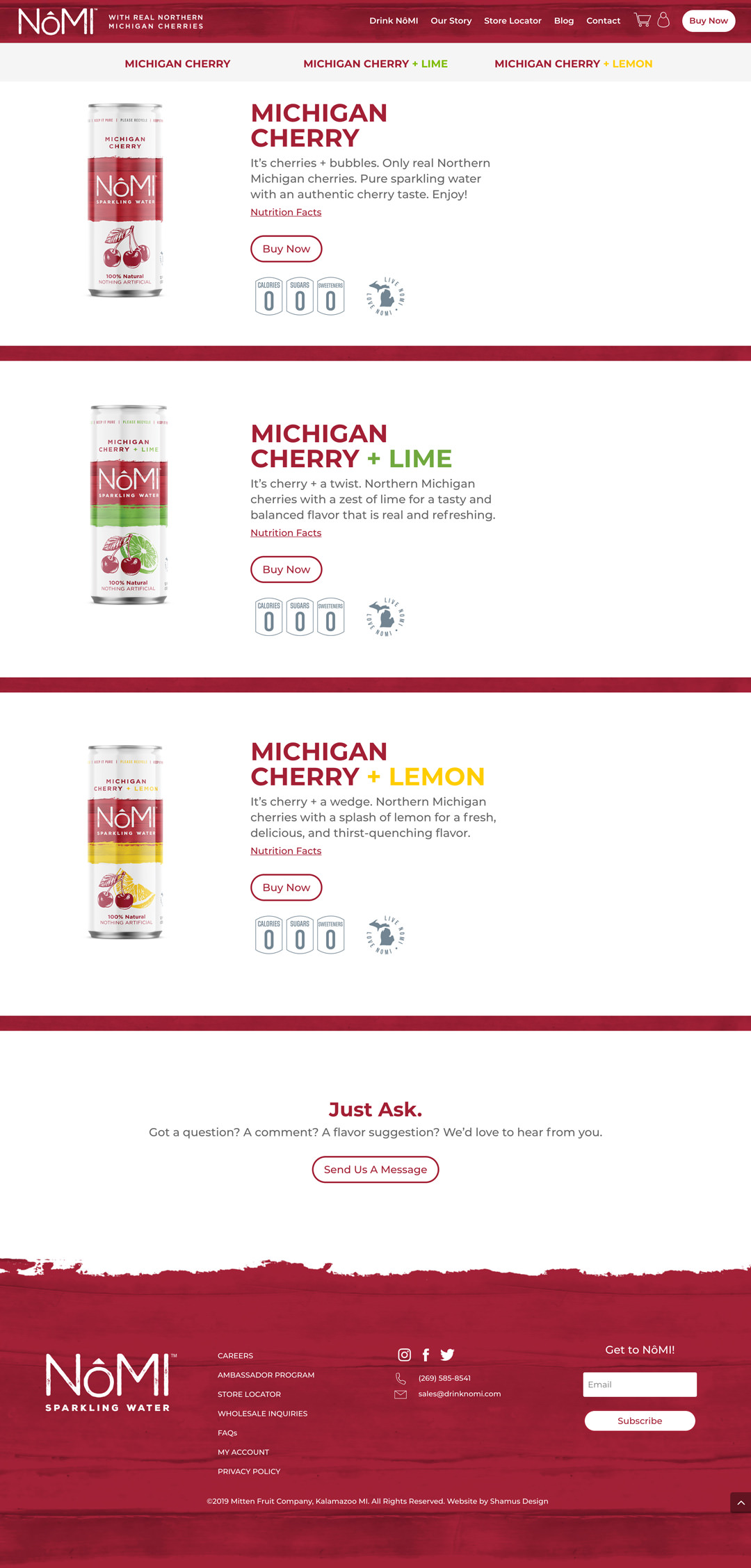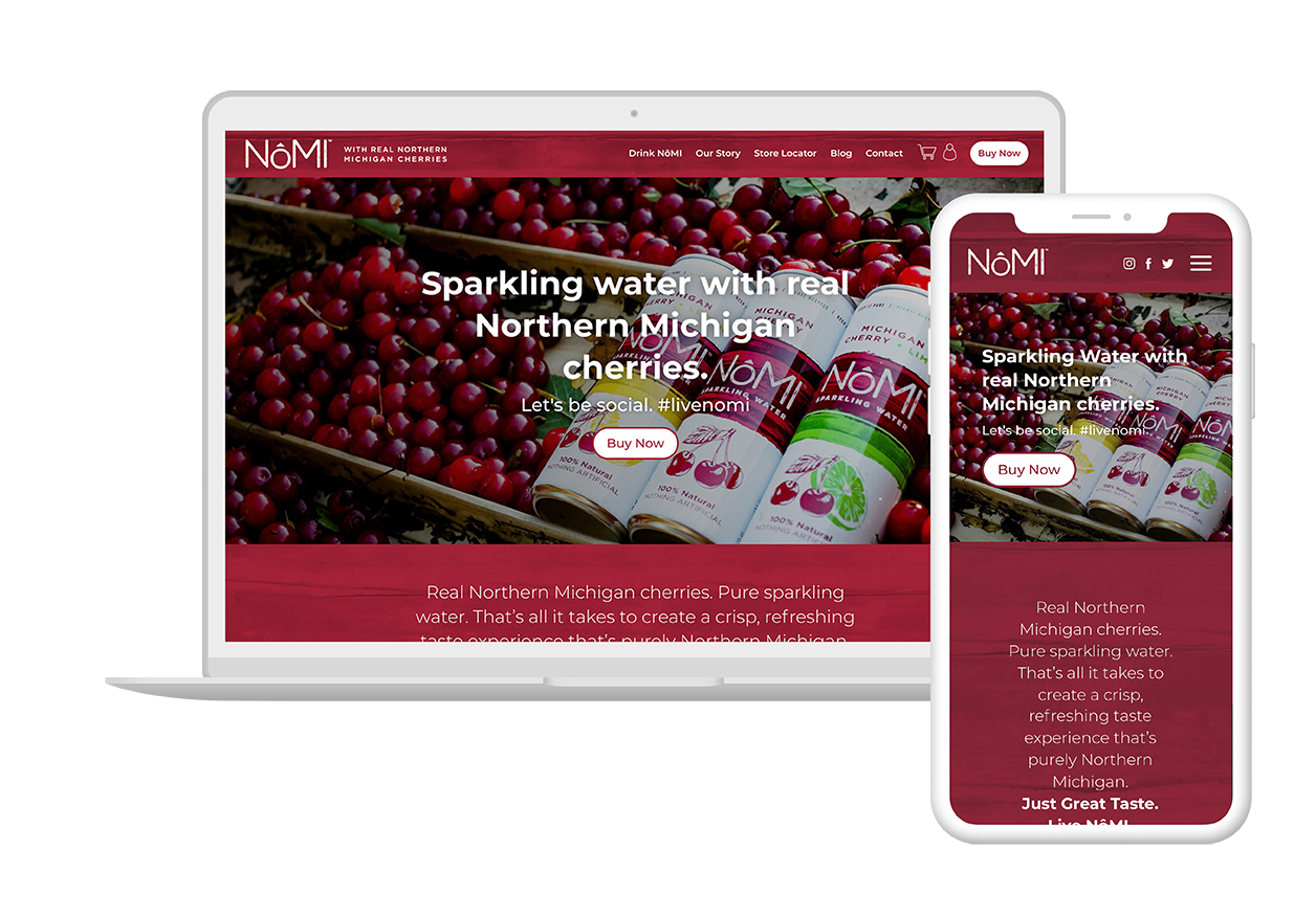 NoMI was a local sparkling water business that marketed a Michigan Cherry-flavored sparkling water. As a venture initiating from the ground up, it required a comprehensive visual identity, a website, marketing collateral, and more.